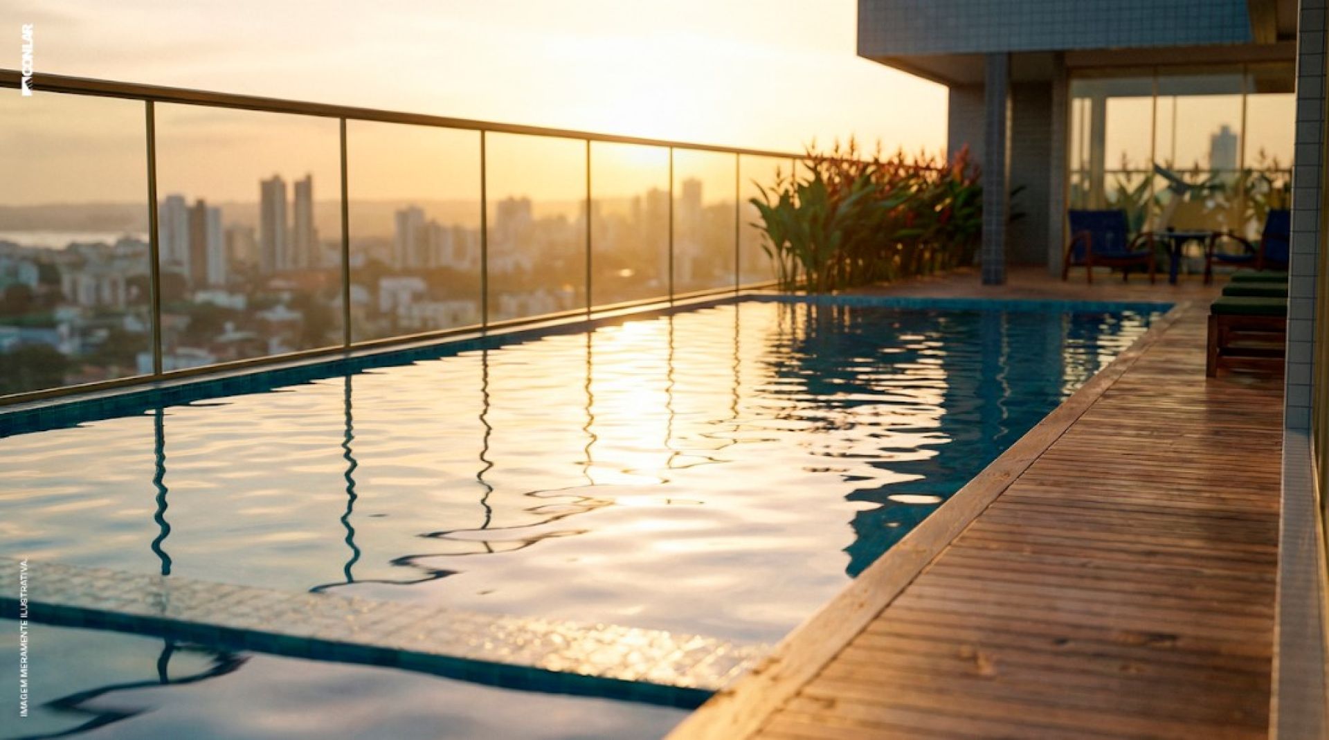 O condomínio conta com uma estrutura completa de lazer e comodidade, destacando um rooftop exclusivo com vista privilegiada e espaços ideais para relaxar e receber.