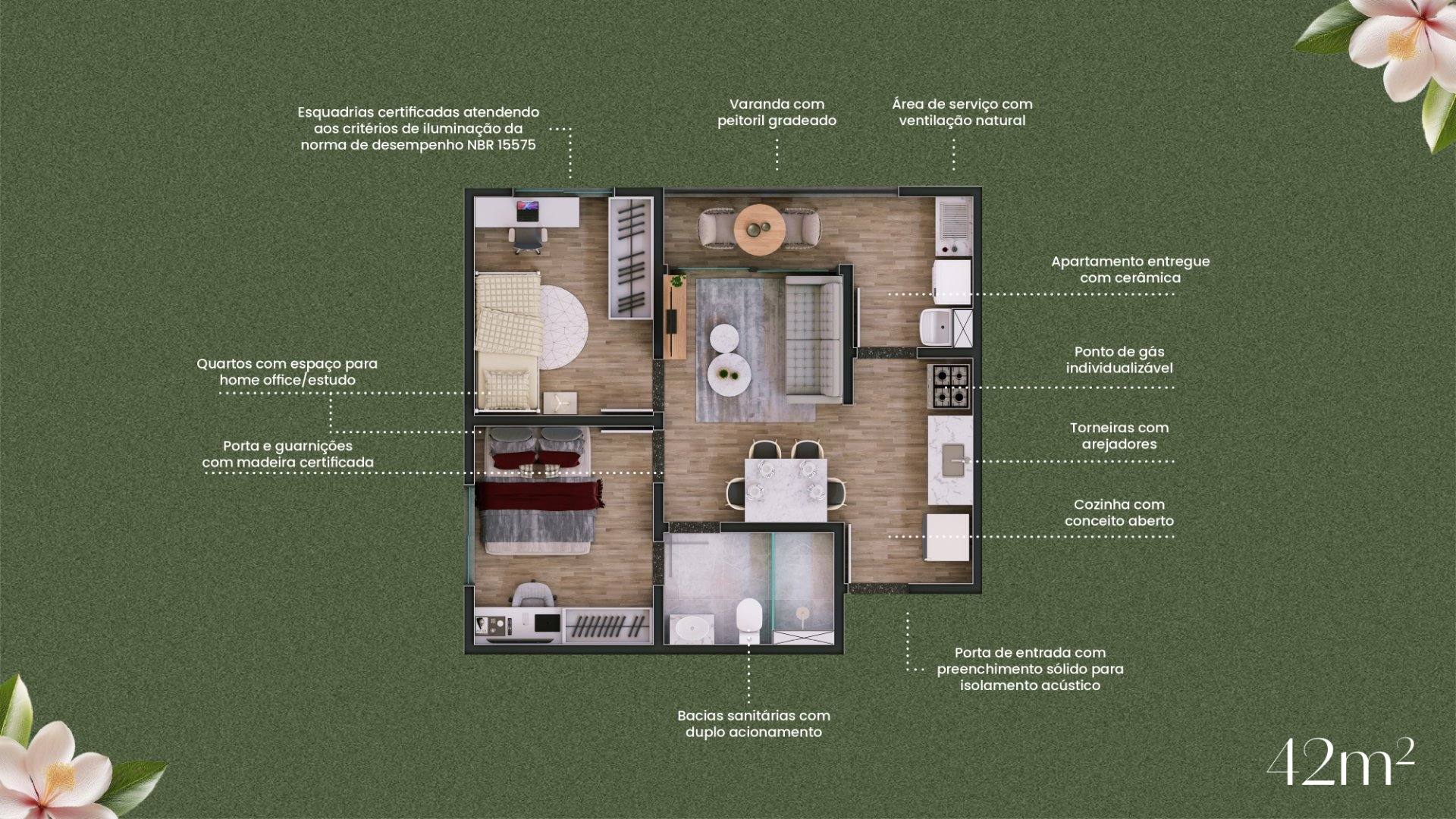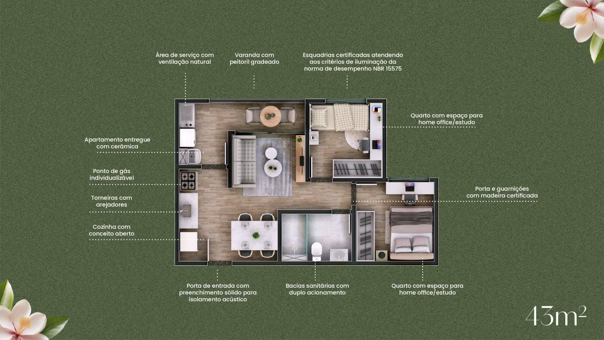 Área Privativa: 43.00m²