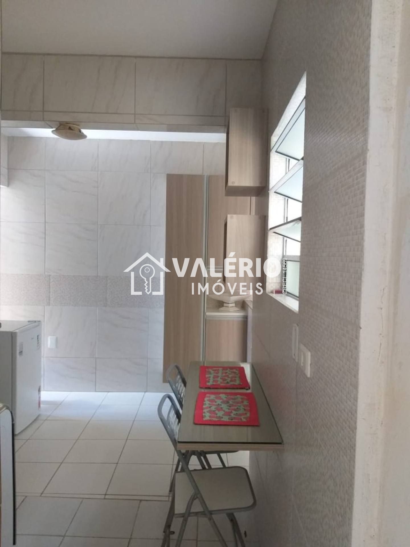 Cozinha mobiliada com móveis em madeira naval revestidos em fórmica e puxadores de alumínio